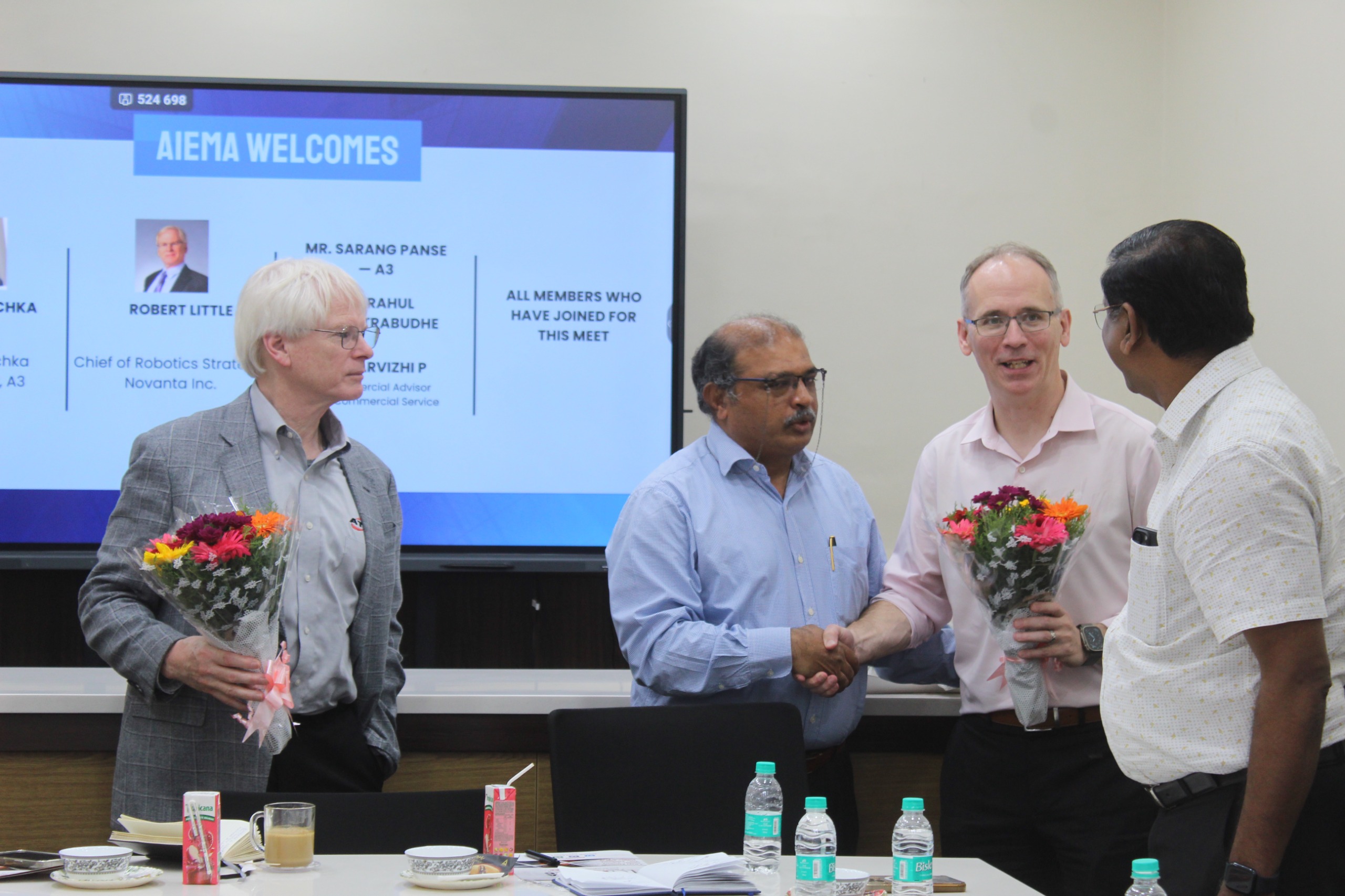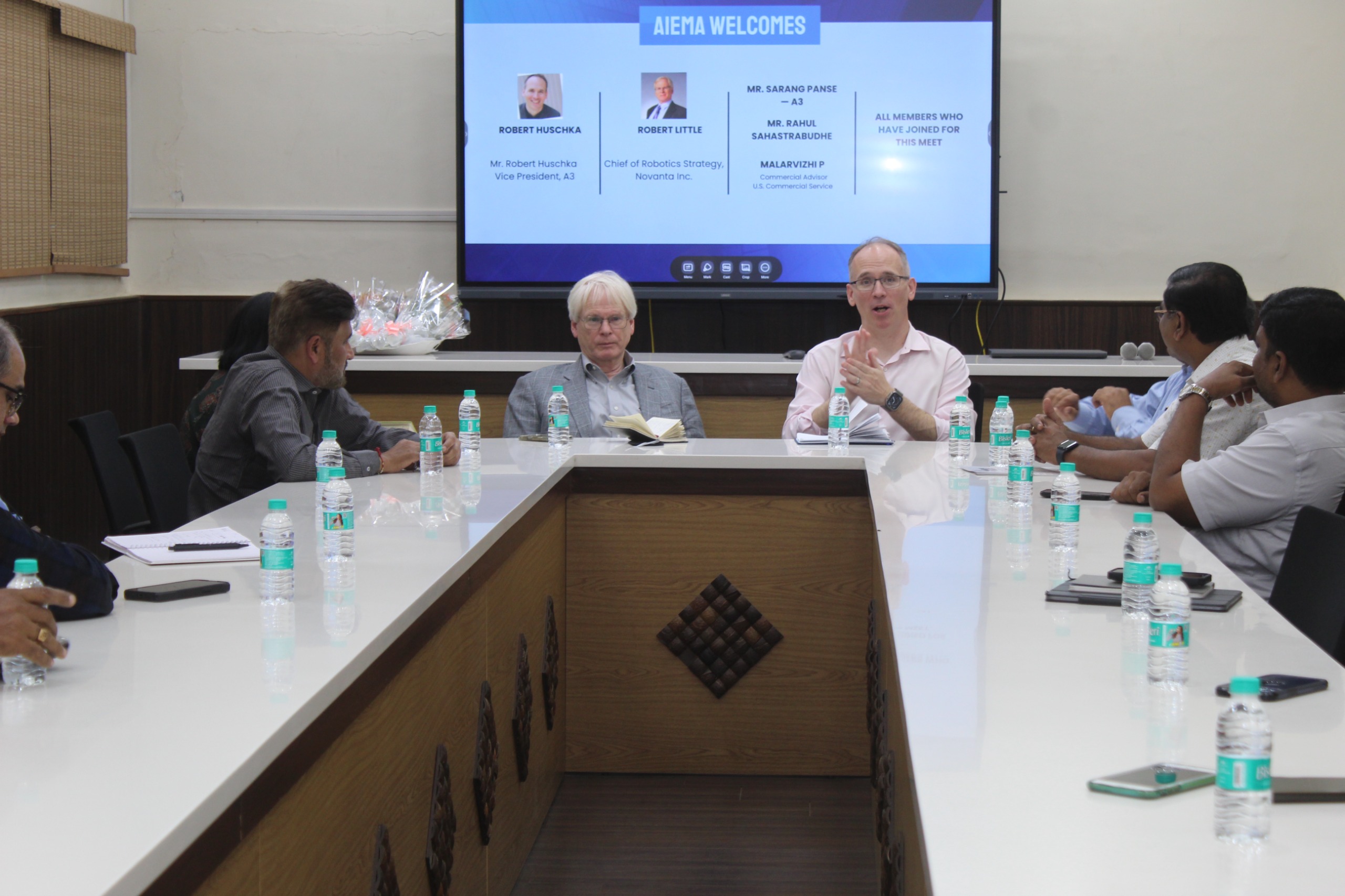 Delegation From (A3) USA @ AIEMA on 31.10.2025 The Association for Advancing Automation (A3) team visited AIEMA today, interacted the participants regarding advancements in Automation and Robotics